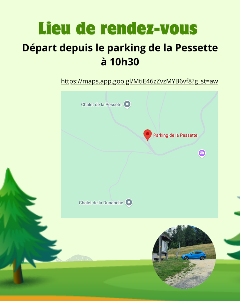 Pique-nique à prévoir. Le départ est prévu à 10h30, depuis le parking de la Pessette.